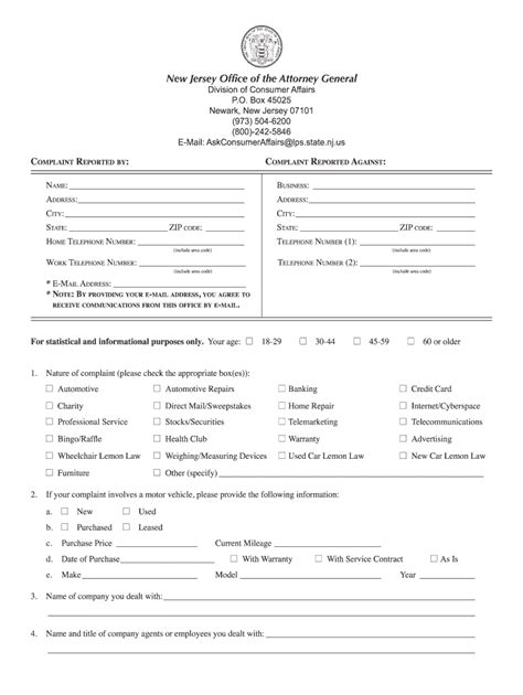 consumer affairs complaint nj