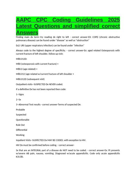 cpc coding guidelines questions