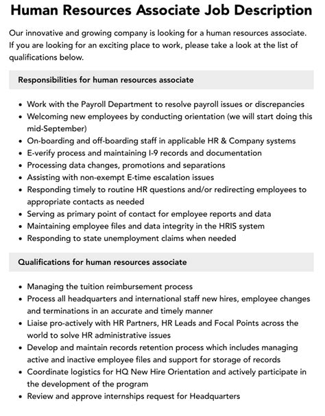 hr associate job description